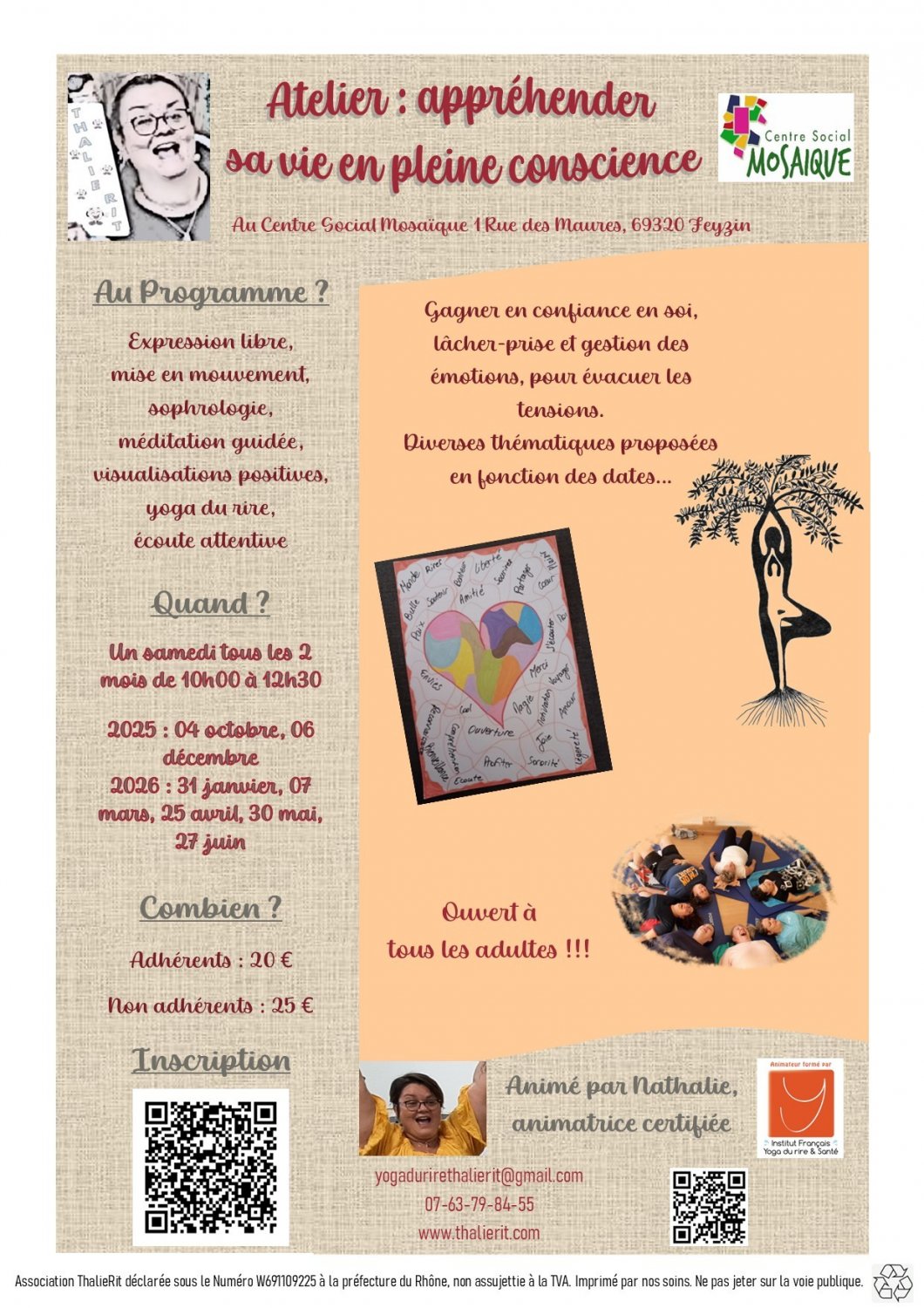 1 Rue des Maures, 69320 FeyzinIntervention au centre social de Feyzin. Inscription : https://www.helloasso.com/associations/thalierit/evenements/atelier-bimensuel-2025-2026